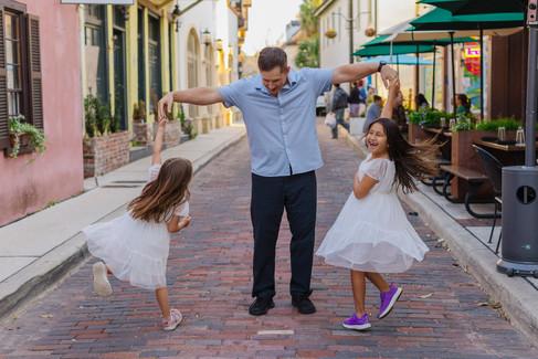 The Busch family was visiting town and had originally booked a beach session, but when the rain rolled in, we quickly pivoted to downtown St. Augustine. It was freezing cold, but that didn’t stop us from capturing some fantastic shots! Stephanie’s daughters even bunny-hopped down the sidewalks to keep warm, and we were rewarded with a stunning sunset. Everyone had a great time, and you’d almost never know how chilly it was. Thanks for being so flexible and fun, Stephanie!